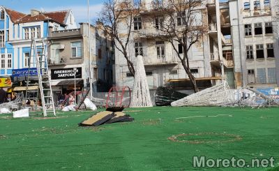 Работници премахват коледната украса на площад "Независимост" във Варна, видя репортер на Moreto.net.
