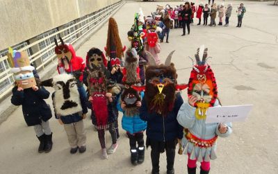 Първокласници излязоха на кукерско шествие в двора на варненско училище