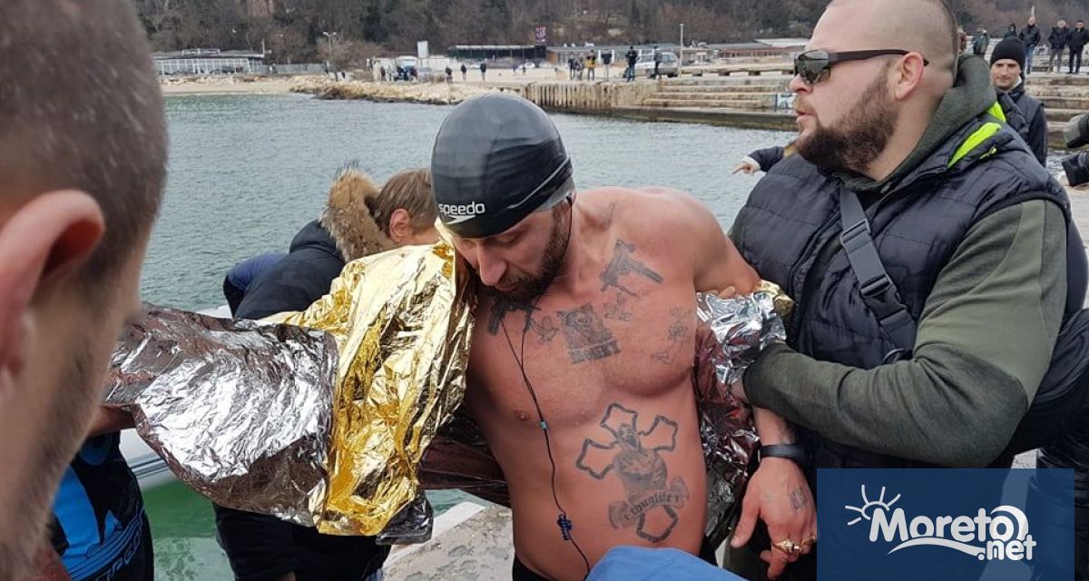 Емил Атанасов извади кръста от морските води край Първа буна на Богоявление през 2018-та година.