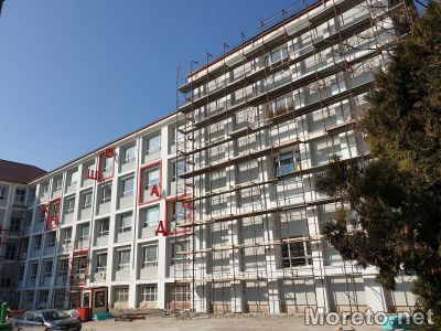 Ремонтът по сградата на училището и физкултурния салон напредва все повече. Част от фасадата на школото вече е монтирана с големи червени букви, които предизвикват погледите на преминаващите.