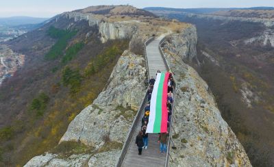 По повод националния празник на България младежи подариха 12-метров флаг за крепостта Овеч в Провадия, научи Moreto.net