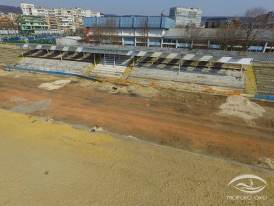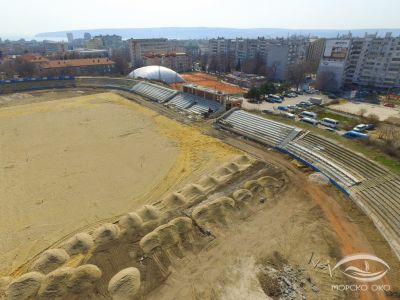 Строежът на новата спортна трибуна на варненския стадион "Спартак" продължава. Снимките от дрона "Морско око" показват, че грубият строеж е факт. След края на ремонта съоръжението трябва да разполага с ново тревно покритие и дренажна система. Проектът за обновяване на стадиона е финансиран от държавата с 1.4 млн. лева, припомня Moreto.net.