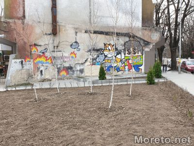 Градинка краси мястото на изгорялото заведение "Палавият Джак" в района на Червения площад във Варна, видя репортер на Moreto.net.