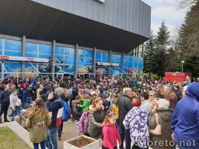 Стотици варненци са пред сградата на Делфинариума на обявеното по-рано безплатно представление, предаде репортер на Moreto.net.