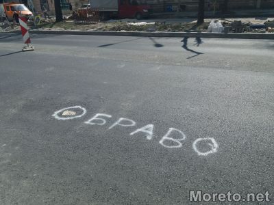 Иронично „Браво“ се появи по едното платно на бул. „Съборни“, вече пуснато в експлоатация, видя репортер на Moreto.net.