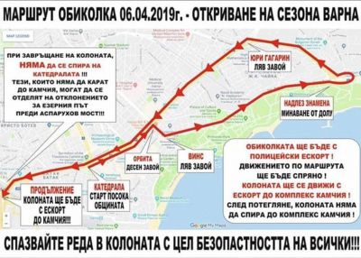 Във връзка с шествие във Варна, с което открива мотосезона, се налага да бъде освободена таксиметровата местостоянка пред Катедрален храм „Св. Успение Богородично“ от превозни средства на 6-ти април (събота) от 8.00 ч. до приключване на мероприятието - около 12.30 ч., съобщават от пресцентъра на Община Варна.