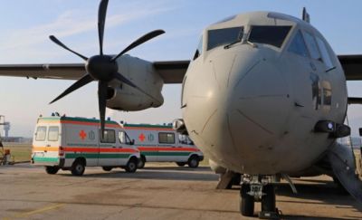 Пострадалата бе транспортирана в София с военен самолет „Спартан" от болницата във Велико Търново, в която тази нощ претърпя животоспасяваща петчасова операция.