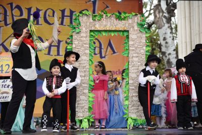 Стотици деца от детски градини, ентусиасти от училища и читалища излязоха на сцената, облечени в костюми на приказни и филмови герои. Циркови номера на пилон, руски панаир, демонстрация на японски бойни изкуства, китайски дракони, черешови топчета, волски каруци, гигантски фигури на матрьошки, маскирани като мечки, камили, коне, магарета, свещеници, дяволи, кукери и сурвакари - това бе малка част от колоритната атмосфера на празника. Младеж избра Карнавала, за да поиска пред всички ръката на своята любима.