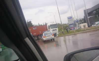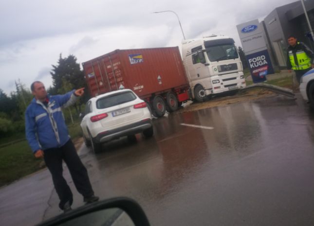 ТИР се е завъртял и е препречил движението при влизане в кръговото по посока Варна.