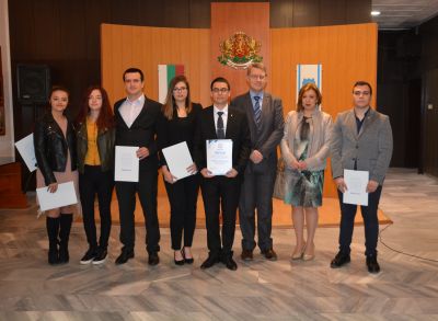 Зам.-кметът Тодор Иванов връчи грамоти на Михаела Милчева, Александра Василева, Едже Емилова, Доротея Николаева, Сали Любенов, Кирил Христосков и Александър Иванов, от специалностите "Защита на националната сигурност", "Психология" и "Архитектура".