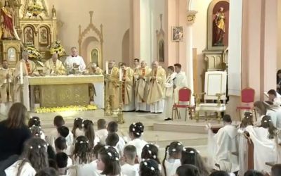 Нашият Господ е възкръснал, така че Господ е жив, той е сред нас. Затова днес можем в Светото причастие да го открием, да го видим с очите, които имаме, ще го видим с очите на вярата, каза папа Франциск на децата. И отбеляза, че първото причастие е преди всичко празник.