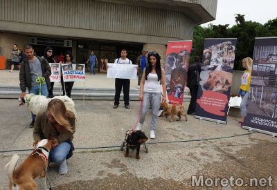 Над 40 души се събраха пред сградата на Община Варна, за да протестират срещу насилието над животни, предаде репортер на Moreto.net.
