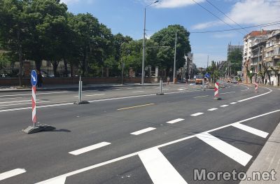 Вече е положена маркировката, начертани са пешеходните пътеки, както и велоалеята, която ще бъде в участъка между булевардите "Владислав Варненчик" и "Сливница".