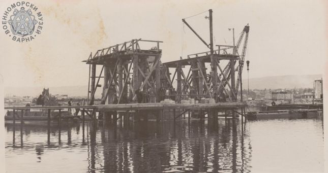 момент от строежа на моста Сн.: Военноморски музей-Варна