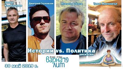Истории vs. Политика е темата в днешната среща с авторите Захари Карабашлиев, Дмитрий Глуховски, Томас Макгонигъл и Пламен Дойнов в рамките на фестивала "Варна Лит" 2019, припомня Moreto.net