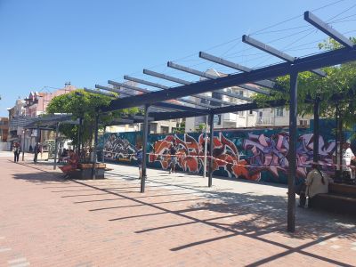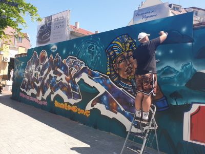 Улични артисти преобразяват част от загражденията на Дупката в центъра на Варна (снимки)
