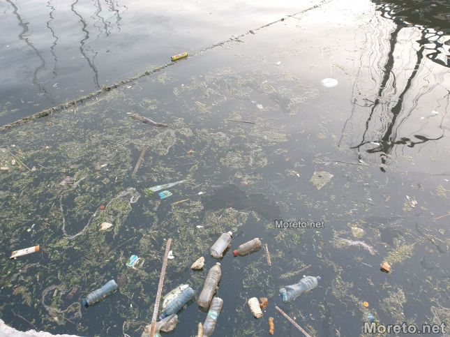До кея плуват шишета от напитки и козметика, опаковки и торбички, които правят неприятно впечатление на разхождащите се.