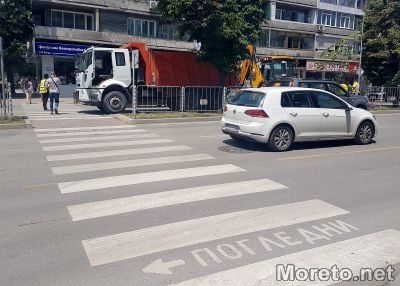 В момента на място има строителна техника и текат дейности по изграждането на "легнали полицаи" на около 20 метра преди самата пешеходна пътека.