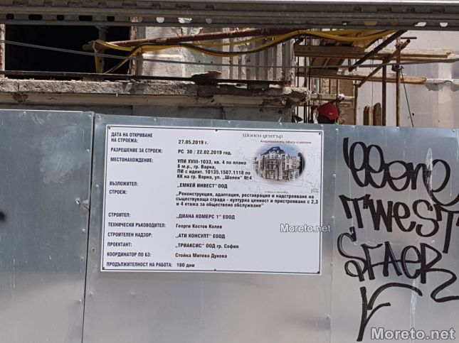 Според информационната табела строителната площадка е отрита на 27-ми май тази година, а разрешението за строеж е от 22-ри февруари. Освен реконструкция, адаптация и реставрация се предвижда и надстрояване на съществуващата сграда - културна ценност и пристрояване с 2,3 и 4 етажа за обществено обслужване, в които ще се помещават офиси и бутикови магазини.