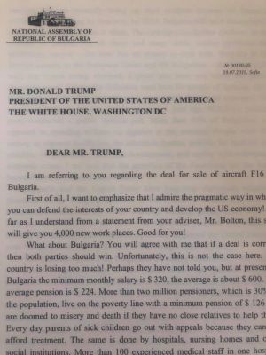 Марешки изрази мнение, че президентът на САЩ гледа да си продаде стоката, но има факти, които трябва да знае. А също поиска да получи отговори на това защо САЩ толкова притиска България да направи този безумен разход?. В обръщението си лидерът на "Воля" пита Тръмп дали е наясно, че най-богатата държава обрича на още мизерия най-бедната държава в ЕС.