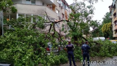 Паднало е голямо дърво в района на ул. "Братя Миладинови" в района на училище "Кирил и Методий". Прекършено е дърво и в района на "Ботевата градинка".
