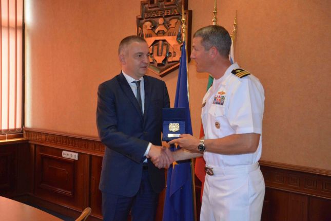 Кметът Иван Портних се срещна с кап. II ранг Крейг Трент – командир на американския военен кораб „Портър, който е на рутинно посещение във Варна от 9-ти до 11-ти август, научи Moreto.net.