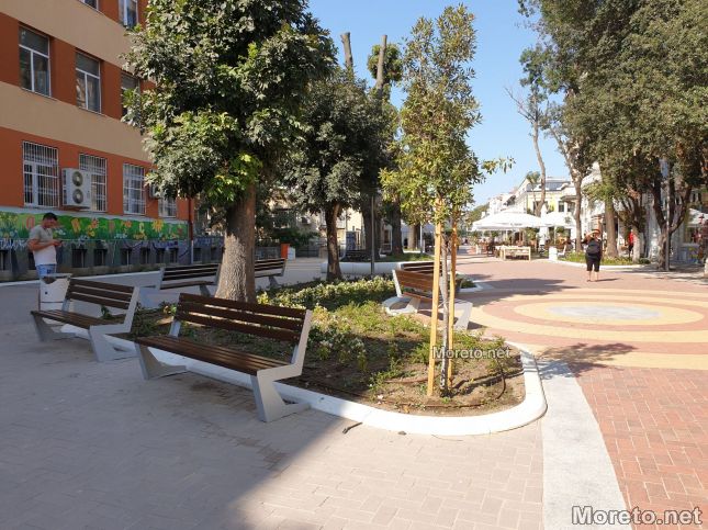 Зоната около СУ "Климент Охридски" изглежда напълно готова. Освен нови шарени плочи от тип "павета" има изградена велоалея, места за паркиране на колелета, нови пейки, кошчета за боклук и растителност.