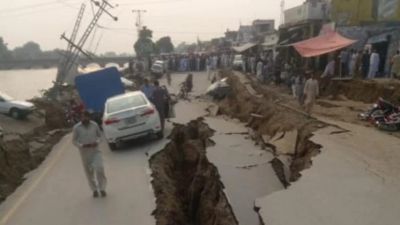 Кадри, излъчени в пакистански медии, показаха рухнали сгради и големи пукнатини по пътищата в град Мирпур, който се намира в пакистанската част на оспорвания Кашмир, близо до границата с Индия.