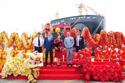 Кръстницата г-жа Ванг Сиаоийнг (Wang Xiaoying) – зам. генерален директор в направление „Кредитиране“ на EXIM BANK OF CHINA, даде на новопостроения плавателен съд името „Миджур“ (MIDJUR) и му пожела щастливо плаване. Тържеството в китайската корабостроителница е едно от важните начинания, с които Китай и България отбелязват 70-та годишнина от установяването на дипломатическите отношения между двете държави. Сред официалните лица бяха заместник-министърът на транспорта, информационните технологии и съобщенията Велик Занчев, Григор Порожанов - извънреден и пълномощен посланик на Република България в Китайската народна република, Кирил Домусчиев – председател на Надзорния съвет на Параходство БМФ АД, Георги Домусчиев – член на Надзорния съвет на Параходство БМФ АД, к.д.п. Александър Калчев – изпълнителен директор на Параходство БМФ АД.