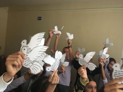 Участниците ще продължат темата за мира, която учениците от VIII „а“ клас започнаха с инициативата „Белите гълъби на мирното детство“. По повод световния ден на мира те изработиха бели гълъби от хартия, на които написаха послания и ги подариха на децата от трети клас. Сега гълъби-послания ще получат и руските ученици -участниците в конференцията.