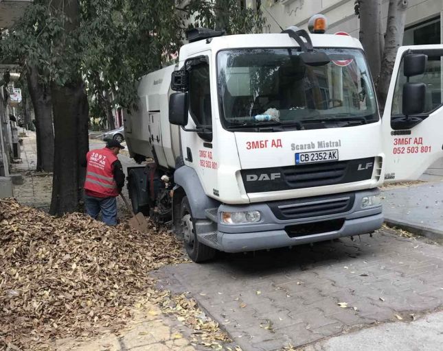 Във връзка с каченият видео материал, Ви информираме, че автомобилът е с емисионен клас EURO 5 и се използва за дейността “Механизирано метене на улични платна, площади и регули”. Предвид есенният сезон и непрестанното окапване на листната дървесна маса, фирма “ЗМБГ”АД използва този автомобил за събиране на листата посредством смукател. Както е видно от снимковия материал събраните листа са на тротоара и събирането им се осъществява с помощта на работник, който ги придвижва към смукателя.