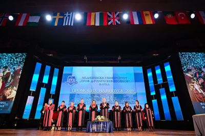 Под звуците на студентския химн в зала „Конгресна“ на Двореца на културата и спорта абсолвентите и гостите аплодираха академичното ръководство и членовете на академичния съвет на МУ-Варна. 66 са отличниците от двата факултета, които получиха дипломите си от ректора на университета проф. д-р Красимир Иванов. Той се обърна към всички завършващи с думите: „Обръщайки поглед назад, знам пред колко изпитания сте се изправяли, за да стигнете до триумфа на днешния празник. Убеден съм, че всичко, което научихте във факултетите по медицина и дентална медицина, ви е помогнало да се изградите не само като отлични лекари, но и като личности. Дипломата, която ще получите днес, ви дава нови възможности и хоризонти. Използвайте ги! Бъдете пример за следващите поколения, работете и живейте така, че да привличате нови млади хора към лекарската професия. Бъдете ментори, бъдете модел за подражание.“ Поздравителен адрес към абсолвентите от випуск 2019 изпрати президентът на Република България г-н Румен Радев.
