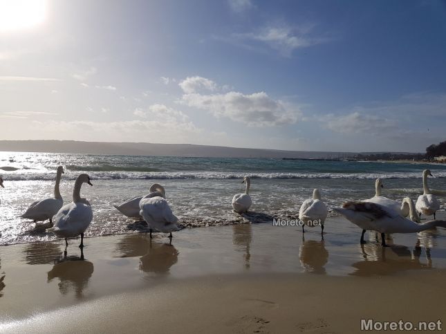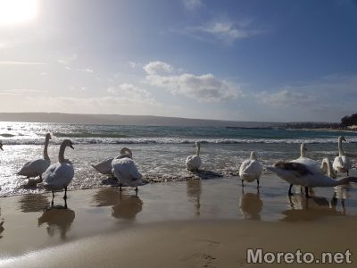 Топлото време, което вчера във Варна достигна рекордните за декември температури от 20,6 градуса, изкара стотици варненци от домовете им. Задължителна спирка за разхождащите се по Алея първа е мястото, където всяка година зимуват лебедите, долетяли от Дания, Германия и Холандия.