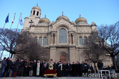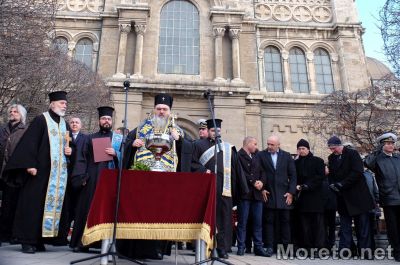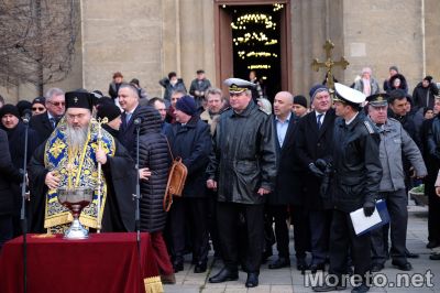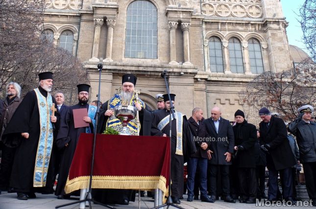 Десетки граждани се събраха пред Катедралата на ритуала за освещаването на бойните знамена навръх Богоявление, предаде репортер на Moreto.net.