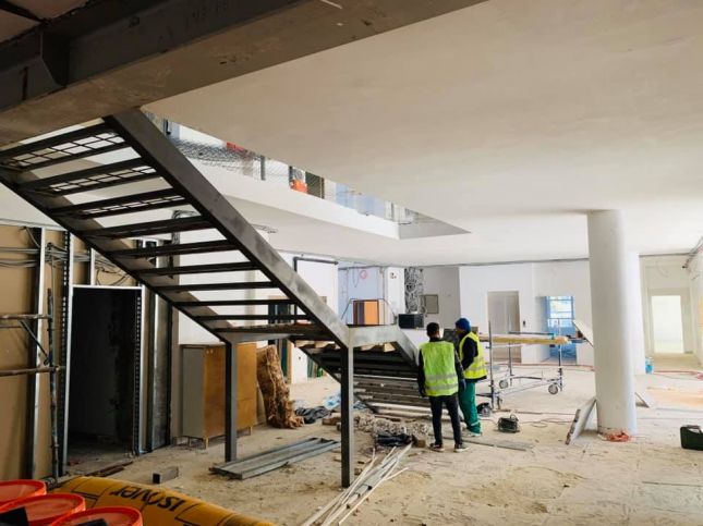 Очаква се до края на тази седмица да бъдат готови всички фасади, върху които ще бъде положена минерална мазилка. След това ремонтните дейности продължават по новия покрив, металните стълбища, електрическата инсталация, изграждането на преградни стени от гипсокартон, подови настилки, монтаж на санитарния фаянс, боядисване, шпакловане и др.
