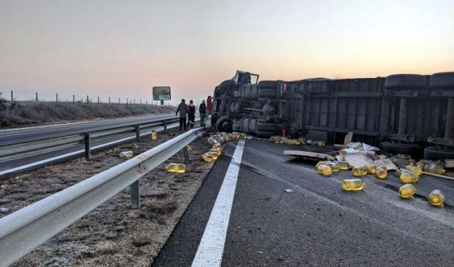 ТИР, превозващ олио се обърна на магистрала "Хемус" край Шумен, съобщават от МВР-Шумен за Moreto.net.