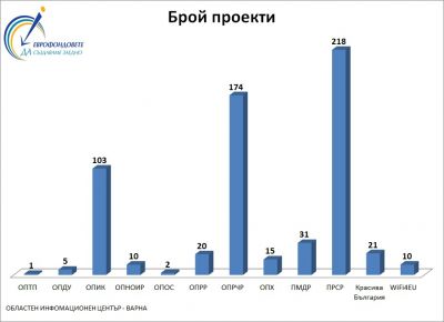 От 2014 година до края на декември миналата година във Варненска област са реализирани най-много проекти по Програмата за развитие на селските райони – 218. Най-много средства по тази програма са инвестирани в Дългопол – 10 701 027 лв., а най-малко в Община Вълчи дол – 1 061 439.90 лв. 174 проекта с бенефициенти общини, фирми и НПО са финансирани по ОП „Развитие на човешките ресурси“. 122 от тях са на територията на Община Варна и са на обща стойност 20 177 669 лв. Най-малко са проектите по тази програма във Ветрино – 2, в размер на 499 994 лв.