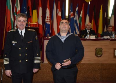 Със заповед на началника на отбраната в Щаба на ВМС във Варна беше награден матрос Левон Топалян, научи Moreto.net. Той получи предметна награда сувенирен нож „Манлихер” от заместник-началника на отбраната вицеадмирал Емил Ефтимов.