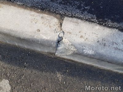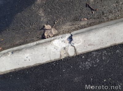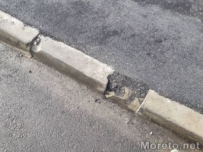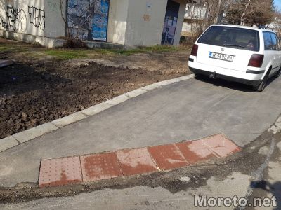 През няколко метра, видно и от снимките, могат да се открият начупените бордюри на новите тротоари, които се използват за паркиране - освен от живущите в квартала, но и от служебните автомобили на ВиК - Варна, както и от строителна техника, вероятно част от тази, която малко по-нагоре довършва един от новите паркинги в квартала.