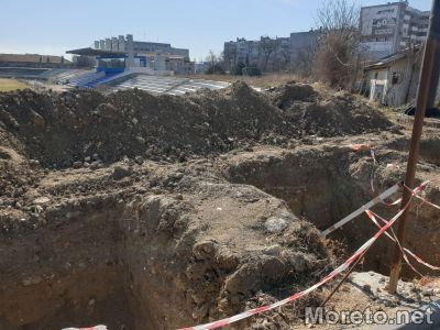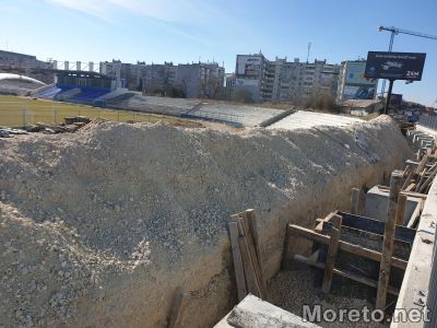 Ремонтът на стадион "Спартак" във Варна продължава и по всичко личи, че скоро няма да бъде завършен. Около терена има големи изкопи, а до тях "планина" от пръст и чакъл, видя репортер на Moreto.net.