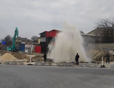 Работници спукаха водопроводна тръба на новото кръгово кръстовище под ромския квартал Максуда, научи Moreto.net.