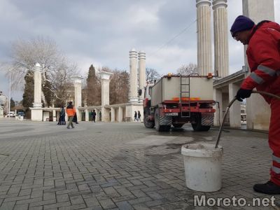 Разчистват центъра на Варна от вандалски графити и грозни надписи, видя репортер на Moreto.net.