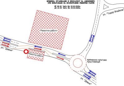 Предвижда се обходът на движението да става чрез прехвърляне в насрещното платно за участък от приблизително 50 м.