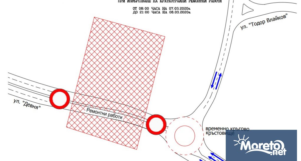 Затворени за движение ще са четирите платна (в двете посоки) на улица "Девня" в участъка от бул. „Република“ до ул. „Г. Пеячевич“.