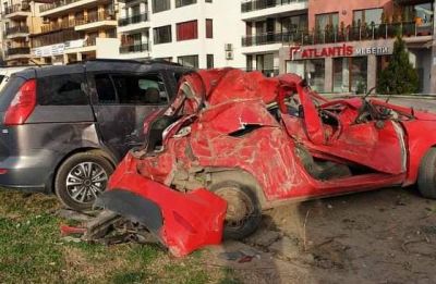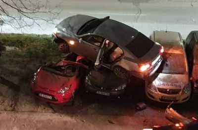 Зрелищна автокаскада във Варна, автомобил "кацна" върху 3 паркирани коли (снимки)