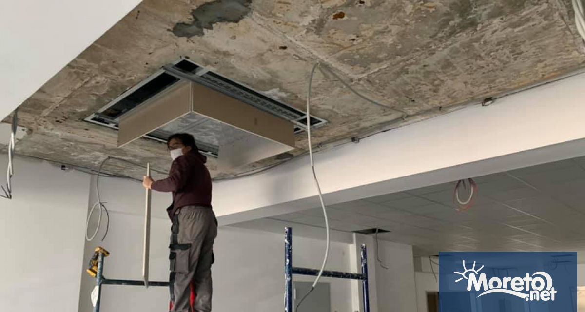 В момента се работи по окачения таван на третия етаж, който е почти завършен. Паралелно с това е започнало редене на ламинирания паркет по класните стаи и монтиране на санитарния фаянс в мокрите помещения.