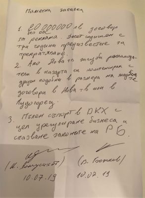Обвиняемият бизнесмен Васил Божков, който се укрива от българските власти в Дубай, публикува днес в профила си във Фейсбук бележка, за която твърди, че е „паметна записка от среща в кабинета на г-н Кирил Домусчиев, проведена на 10 юли 2019 г.“.