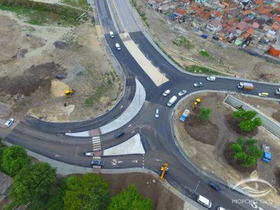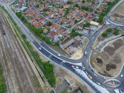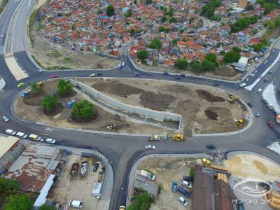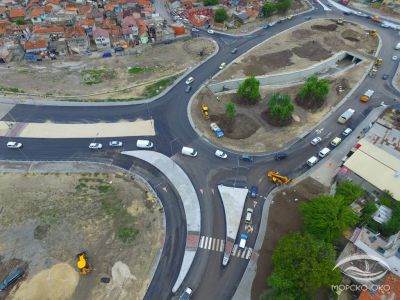 Снимки от дрона на Морско око от вчерашна дата показват последните довършителни операции на кръговото кръстовище буквално.