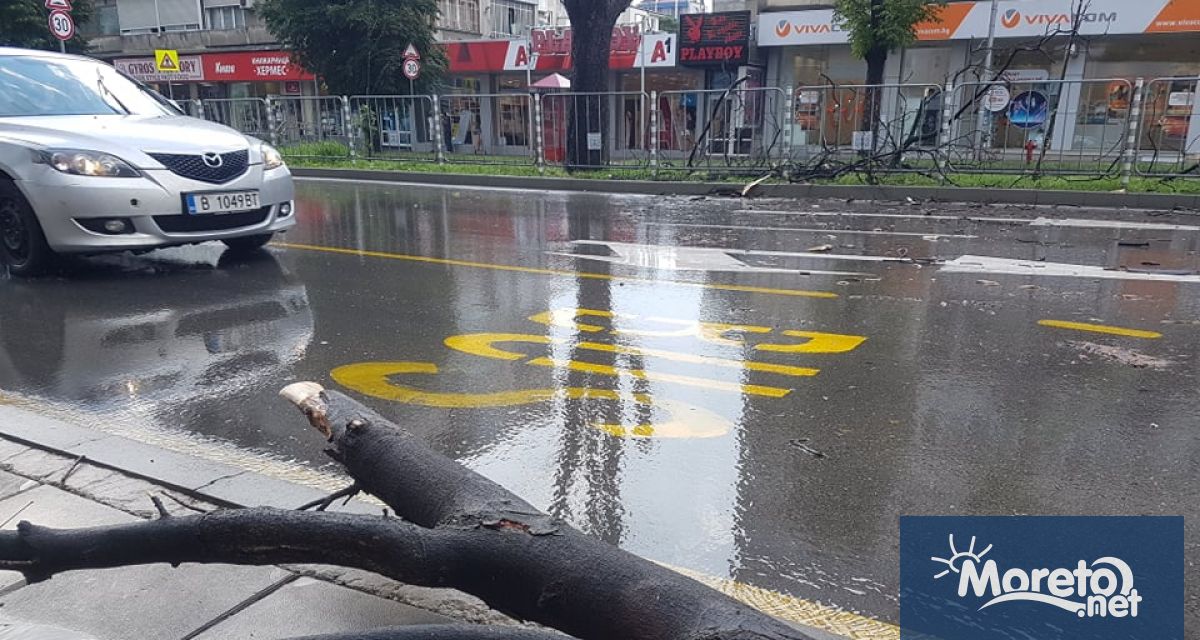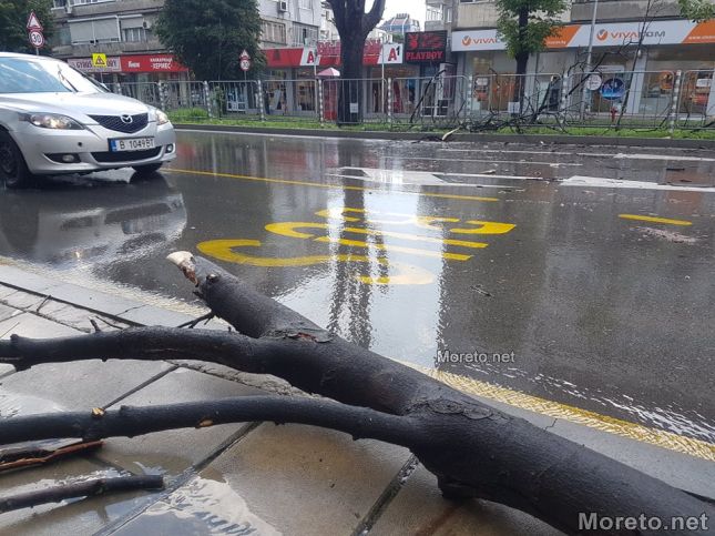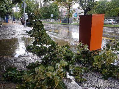 Внезапна лятна буря, придружена от дъжд и силен вятър, причини падането на клони на дървета в много райони на Варна и наводни отново улици.