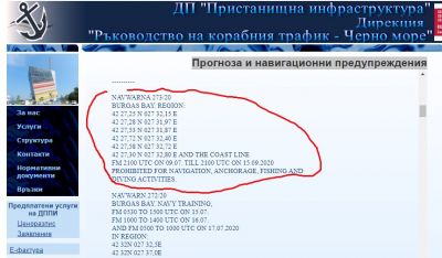 Информация за забраната е публикувана в сайта на Дирекция "Ръководство на корабния трафик" към Държавно предприятие "Пристанищна инфраструктура".